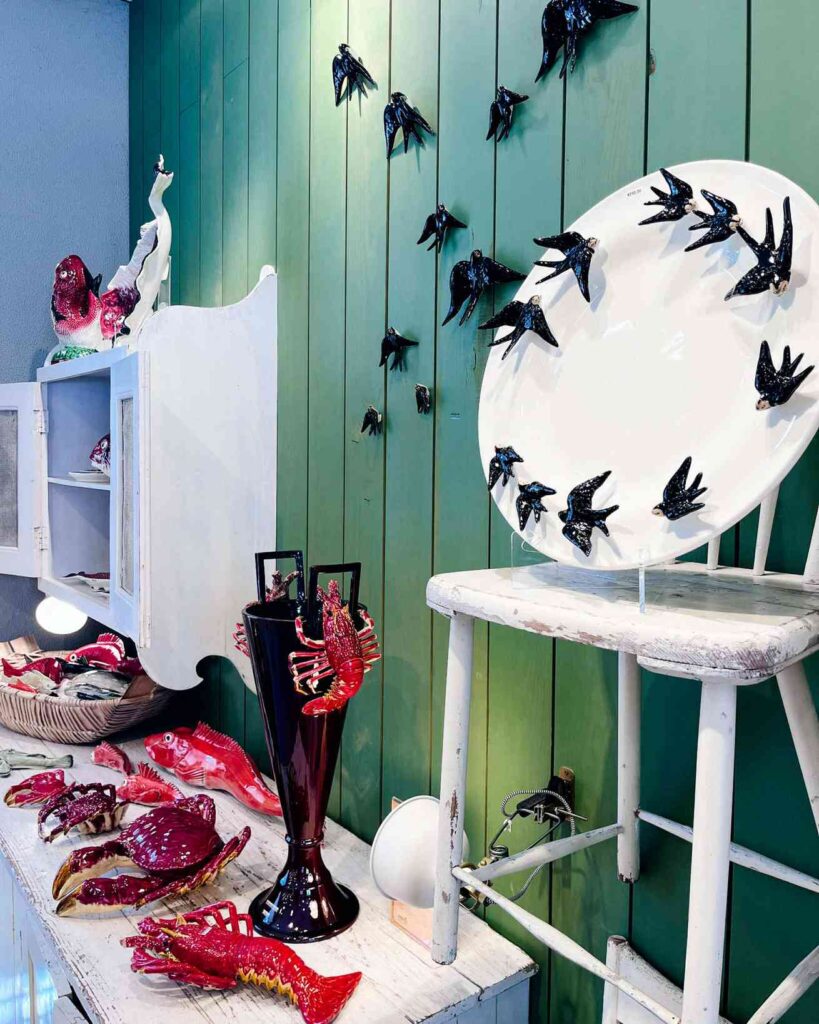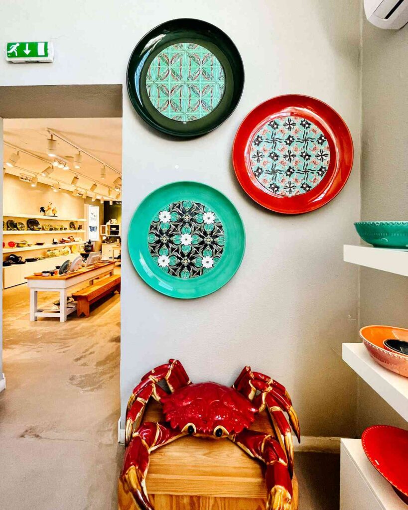 Najpiękniejszą ceramikę w Portugalii znajdziesz u Bordallo Pinheiro. Twórca marki opracował też wzór ceramicznych jaskółek i sardynek więc te oryginalne kupisz też właśnie tam. Co jeszcze tam znajdziesz? Naczynia w kształcie warzyw – talerzyki w kształcie pomidora, puzderka w kształcie kapusty, misę o formie bakłażana, paterę na ser strzeżoną przez myszki itd. Radosne, praktyczne i… nieoczywiste. Zachwycające jednym słowem!