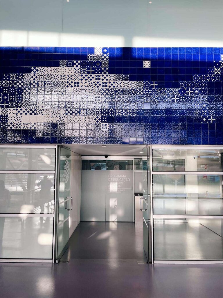 Oceanarium w Lizbonie powstało na terenie wystawy Expo’98, a azulejos nawiązują do tematu tamtej wystawy („Oceany. Wielkie Dziedzictwo Przyszłości”). Architekt budynku, Peter Chermayeff jest również autorem azulejos. Użył ich dokładnie… 54 tysiące(!). Z rozmachem opowiedział o oceanach świata. Połączył tradycyjny sposób malowania kobaltowych wzorów na białym tle z nawiązaniem do nowoczesnych technologii. Wkomponował 12 modułów ze wzorami informatycznymi, widocznymi tylko z bardzo bliska. Ich tropienie to zadanie dla detektywa z zacięciem IT 😉 Widziane z daleka, wzory układają się w kształt ryb i abstrakcyjnej morskiej toni.