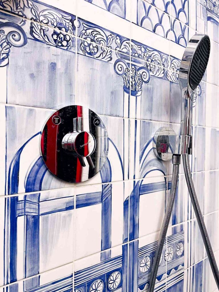 Do Hamptons oddychającego nadmorskim vibe’m – fajnie będą pasować ornamenty marynistyczne i koniecznie niebieskie. Wybór płytek z motywem morskim jest ogromny (i dobrze, bo są fantastycznym pomysłem zwłaszcza do łazienek).