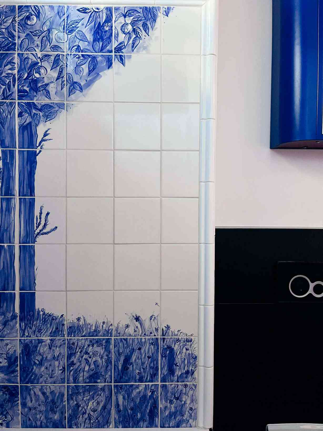Portfolio AZUL to projekty indywidualne. Kafelki ręcznie malowane z dbałością o szczegół, najczęściej z niebieskim wzorem – bo taki klienci najczęściej wybierają. Kafle trafiają na ściany, blaty, stoły (jako podkładki pod kubek) i na lodówki (jako magnesy). Płytki azulejos dostępne są w moim sklepie, a tutaj możesz zobaczyć przykłady moich realizacji. Płytki we wzory kwiatowe, portugalskie, ze zwierzętami, zainspirowane sztuką, płytki w kropki i płytki pasujące do ceramiki Bolesławiec (tak! takich właśnie kafli ludzie często szukają ;).