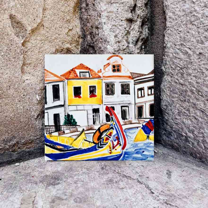 Aveiro namalowane na kafelku jest ciche i puste. Bez tłumów. Bez hałasu. Bez kijków do selfie, które upatrzyły sobie akurat ciebie na swoją kolejną ofiarę. Na kafelku „portugalska Wenecja” jest właśnie taka, jaką chciałabyś ją widzieć! 🙂