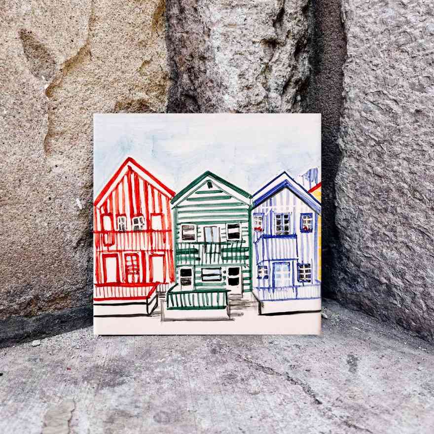 Costa Nova namalowane na kafelku jest ciche i puste. Bez tłumów. Bez hałasu. Bez kijków do selfie, które upatrzyły sobie akurat ciebie na swoją kolejną ofiarę. Na kafelku rybackie domki są właśnie takie, jakie chciałabyś widzieć! 🙂