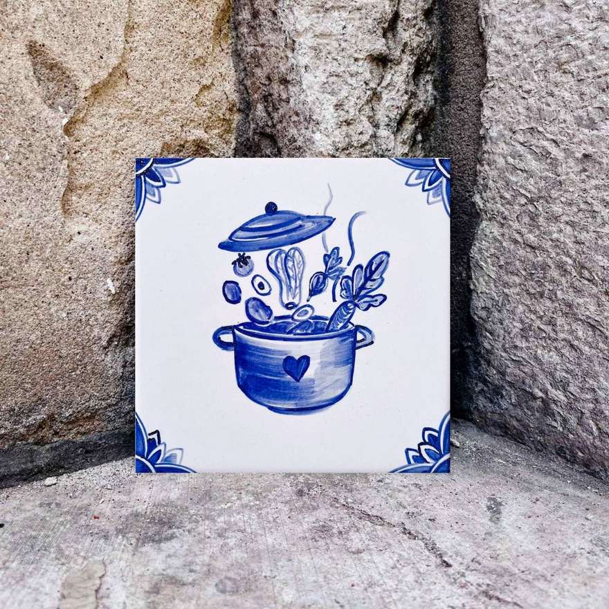 Garnek w roli podkładki sprawdzi się najlepiej jeśli wybierzesz opcję podklejenia korkiem, ale możesz użyć go nie tylko jako podkładkę. Kulinarny kafelek będzie też świetnie się czuł na ścianie w towarzystwie pozostałej hobbystycznej ferajny, a jeśli chcesz by stanowił akcent dekoracyjny, uzupełnij pozostały fragment ściany białymi kafelkami o idealnie tym samym odcieniu.