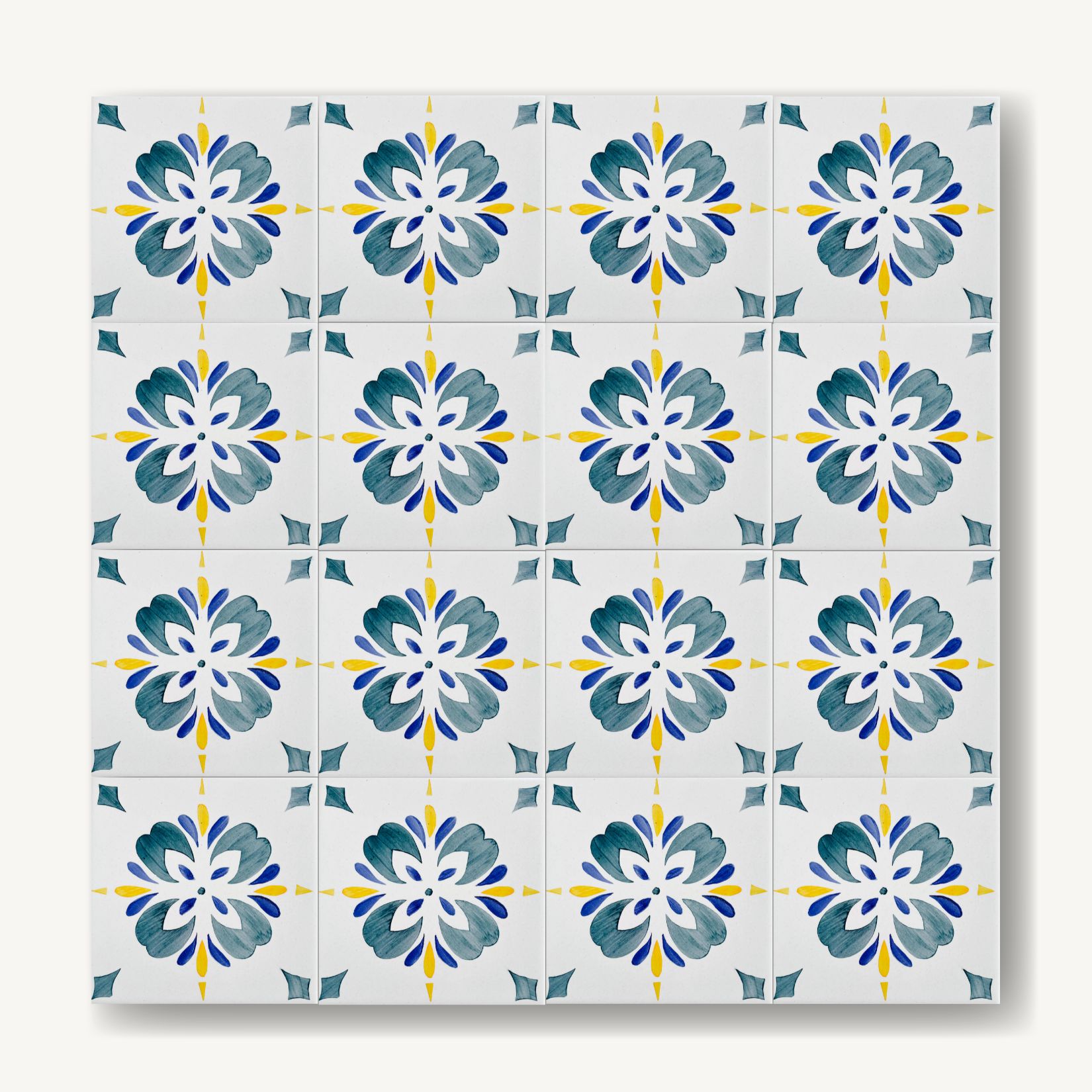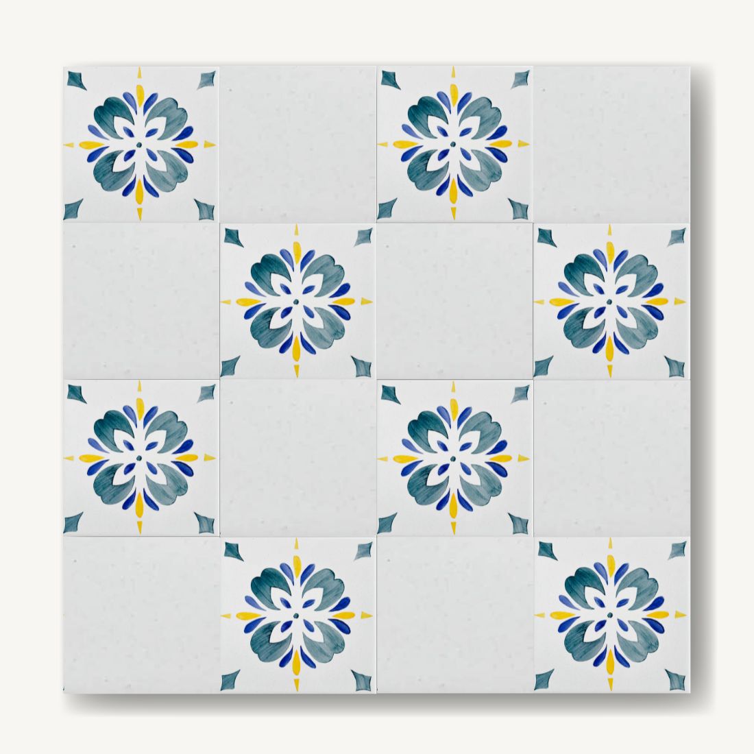 Każdy kafelek malowany jest ręcznie techniką majoliki. Dlatego drobne różnice w kresce czy odcieniu są naturalną częścią ich charakteru. Kiedy układają się obok siebie, tworzą żywy rytm – delikatnie zmienny, ale spójny.