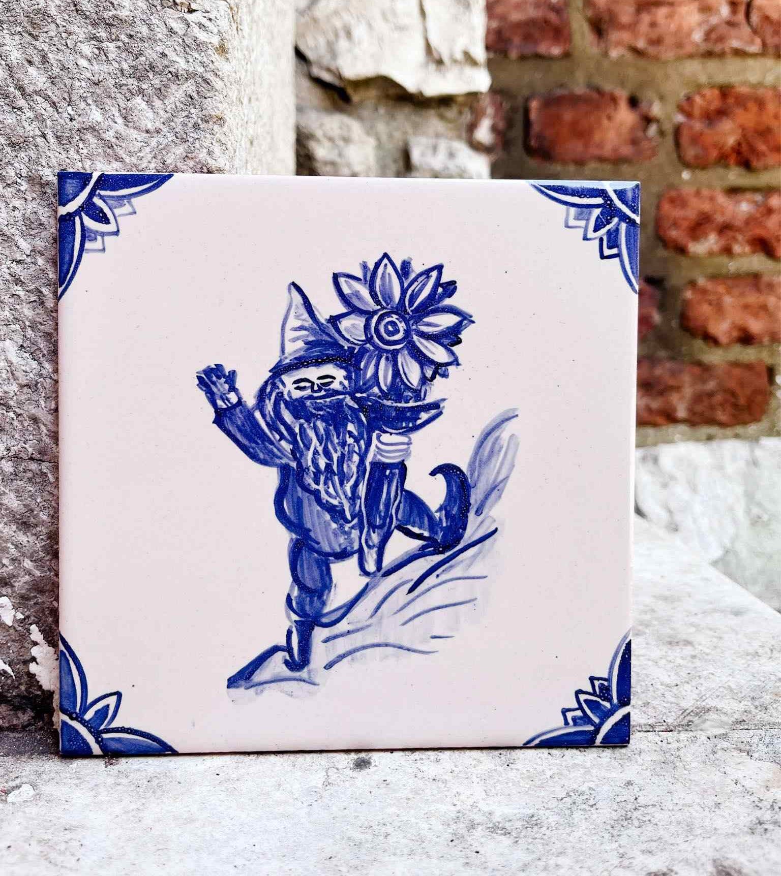 Niewielkie figurki rozsiane są po mieście i dużo frajdy daje zabawa w ich tropienie. Każdy z nich jest inny, każdy ma swoje atrybuty. Na kafelki trafił jeden – specjalnie przeze mnie wybrany – Krasnal Życzliwek. Czemu akurat ten? Bo wyciąga w twoim kierunku bukiet kwiatów. Bo on uśmiecha się do ciebie, a ty zaraz chcesz się uśmiechnąć i do niego i do świata. A do tego kwiaty, które trzyma to słoneczniki, a te kocham miłością wielką.