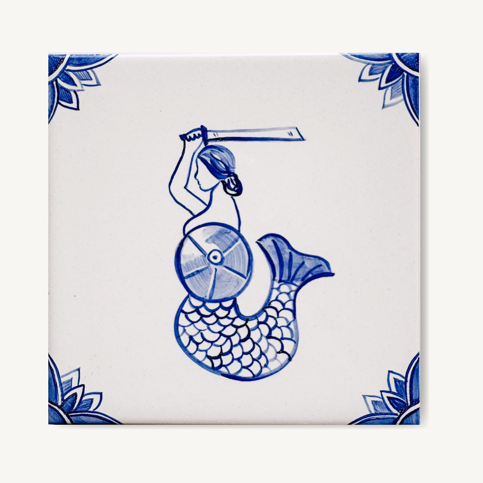 Kafelek przedstawia symbol Warszawy – syrenkę będącą znakiem rozpoznawczym miasta.