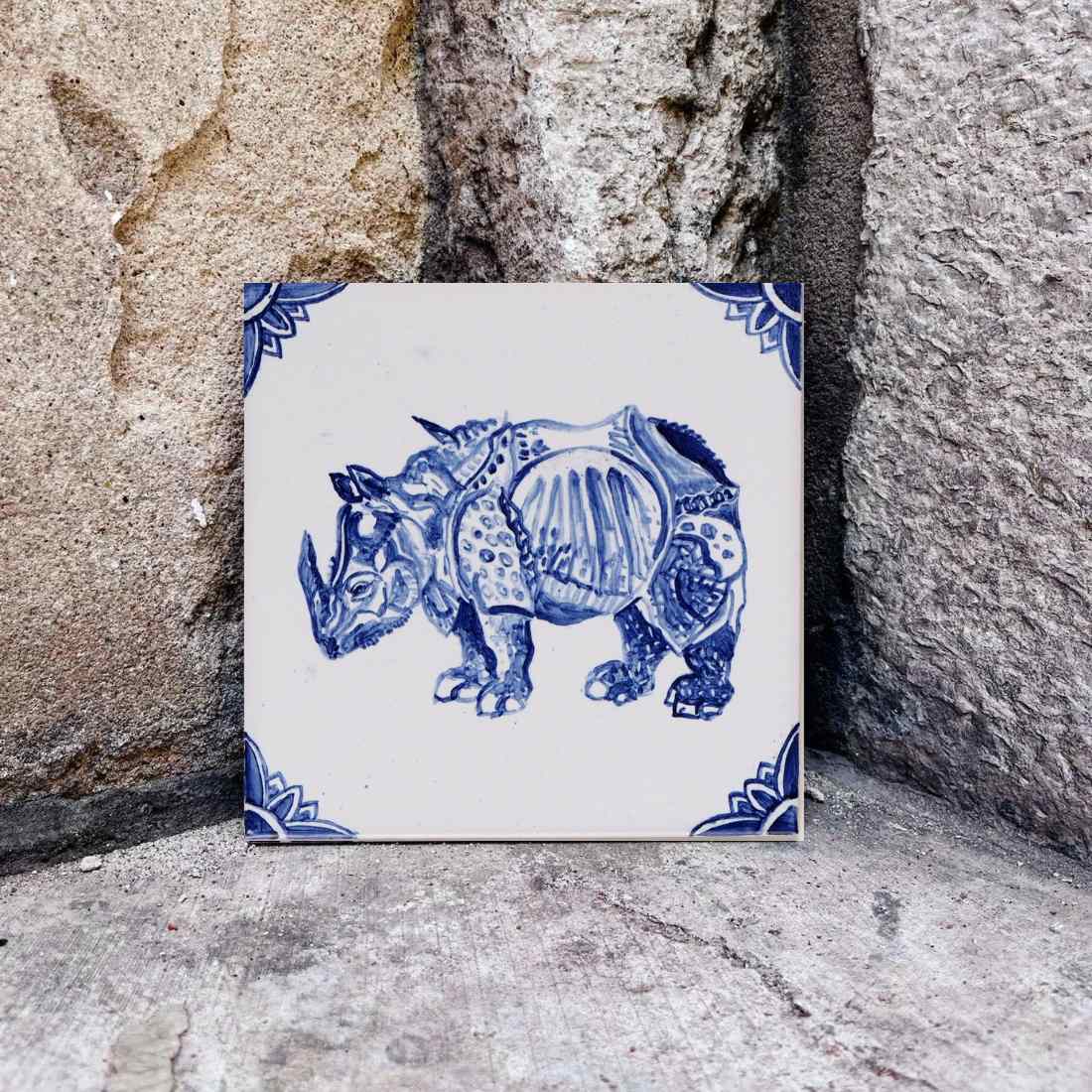 Poruszona pięknem lizbońskiego Pałacu Fronteira namalowałam 6 kafelków nawiązujących do dekoracji azulejos jakie widziałam w tamtejszym ogrodzie. Zafascynowało mnie odkrycie, że nosorożec, którego znałam z albumów o sztuce tak naprawdę trafił do Dürera przez Lizbonę.