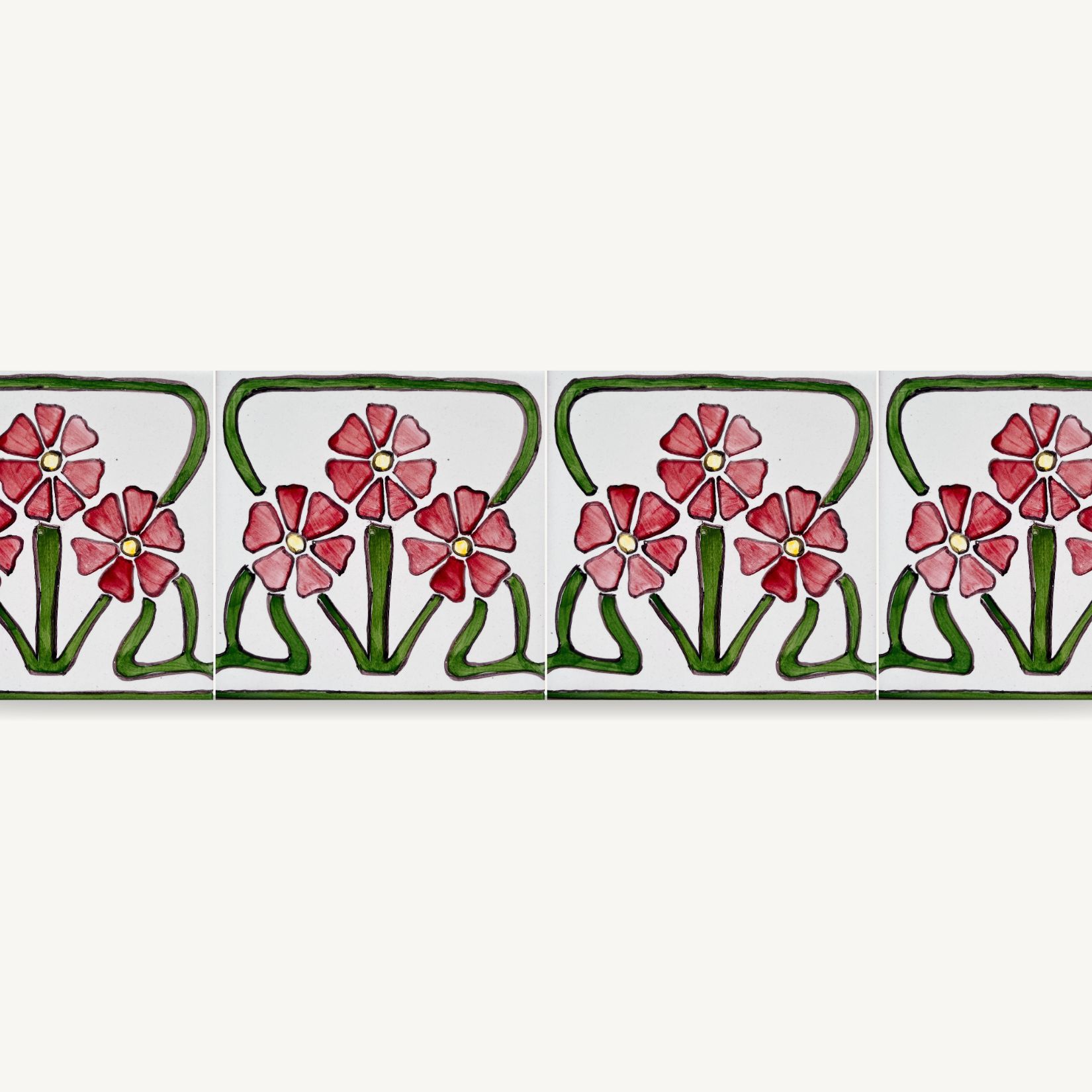 Prado to wąska, ręcznie malowana listwa, którą możesz poprowadzić nad blatem, między rzędami białych kafli albo wokół lustra. Tworzy wyraźną, ale lekką linię. Porządkuje przestrzeń i sprawia, że wnętrze przestaje być anonimowe.