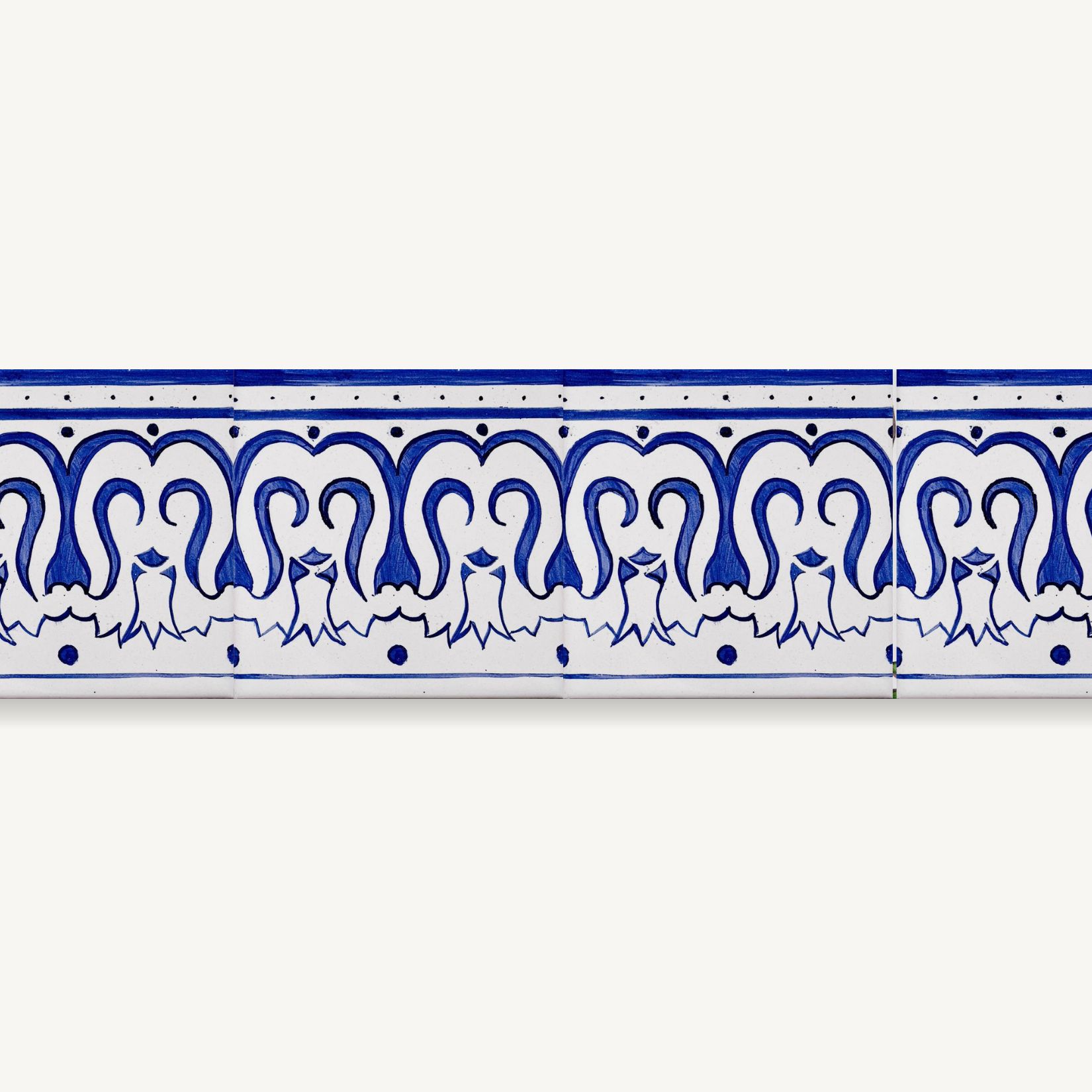 Każda sztuka malowana jest przeze mnie osobno, pędzlem, techniką majoliki. Czasem kobalt jest głębszy, czasem bardziej rozmyty. Czasem kreska minimalnie drży. To ślad ręki, nie maszyny. Dzięki temu ta linia nigdy nie jest zupełnie taka sama.