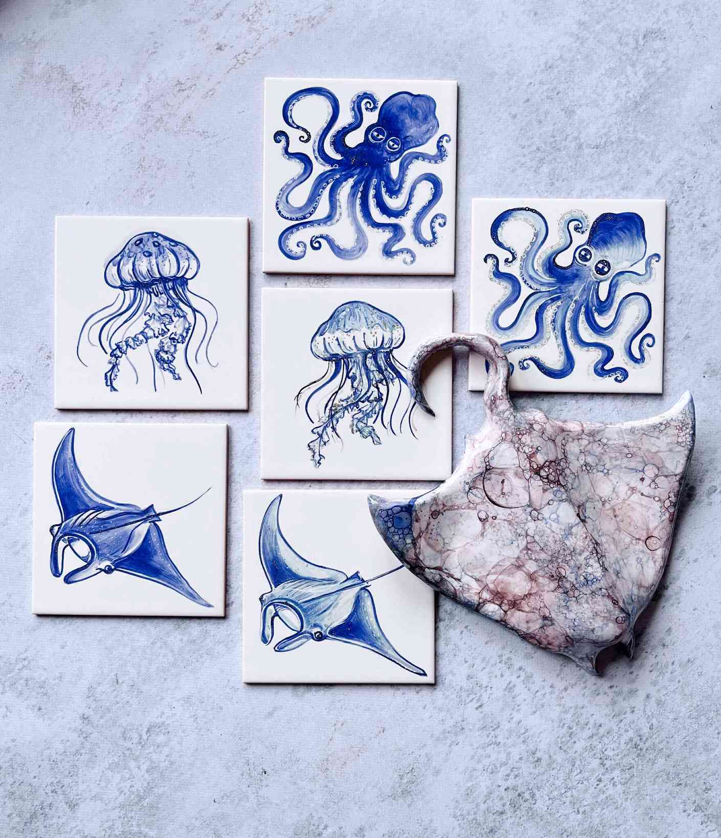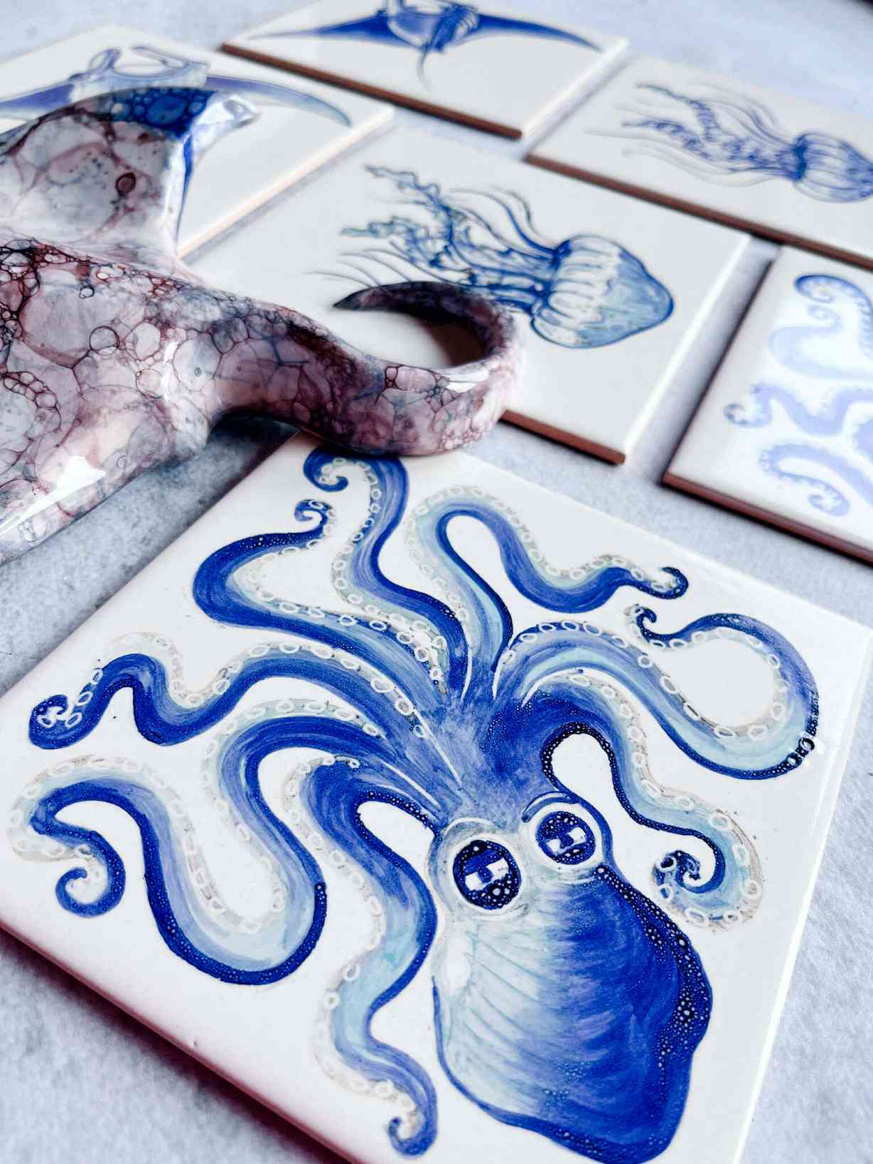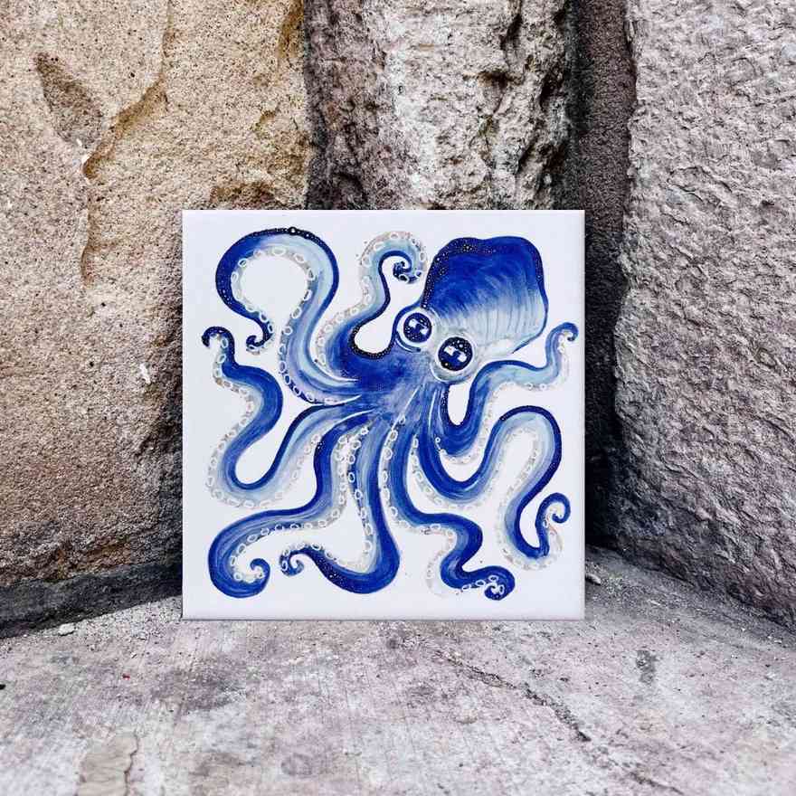 Kafelek z ośmiornicą chętnie potowarzyszy ci w domu i na stole, w biurze i na biurku. Odporny jest na wysokie temperatury – nie straszne mu ani patelnie z jajecznicą ani kubki herbaty. A co tam – lampkę wina też na nim postaw! Albo nastrojową świeczkę – skapujący wosk łatwo z niego zsuniesz.