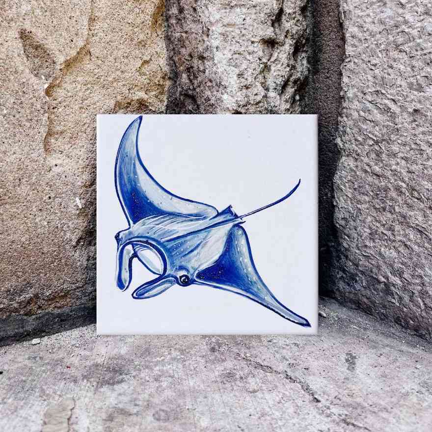 Kafelek z płaszczką chętnie potowarzyszy ci w domu i na stole, w biurze i na biurku. Odporny jest na wysokie temperatury – nie straszne mu ani patelnie z jajecznicą ani kubki herbaty. A co tam – lampkę wina też na nim postaw! Albo nastrojową świeczkę – skapujący wosk łatwo z niego zsuniesz.