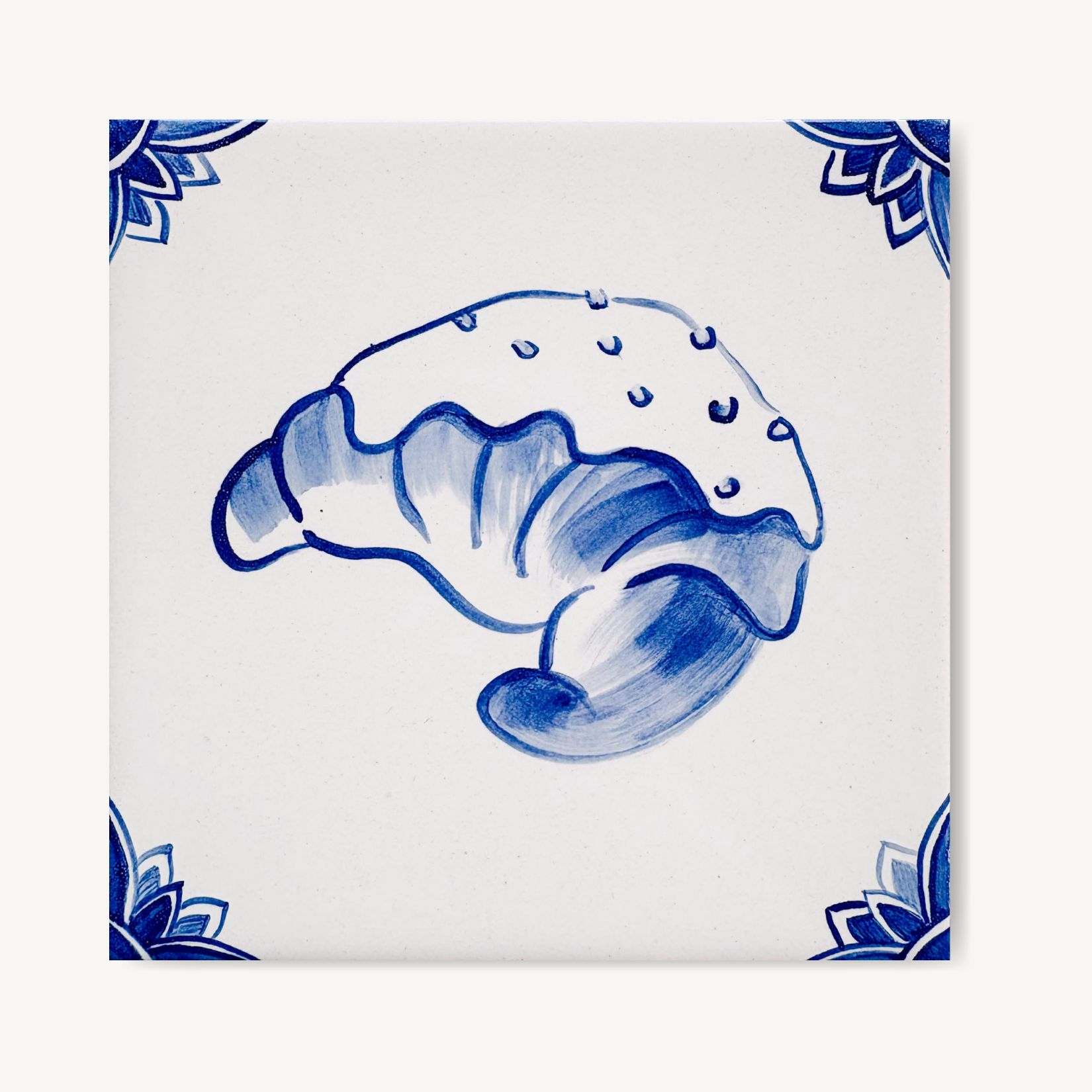 Ten kafelek przedstawia rogala świętomarcińskiego – jeden z polskich smaków – mały, codzienny motyw, który w tej kolekcji staje się częścią większej opowieści.