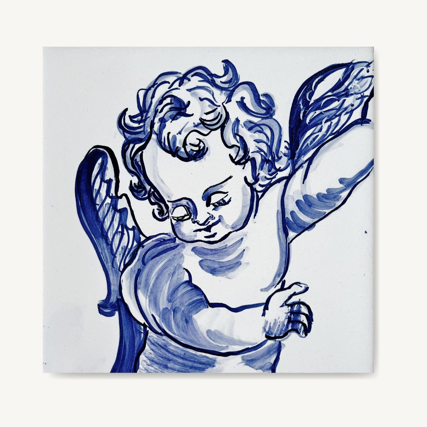 Jak wszystkie moje kafelki, powstał ręcznie. Każda linia była prowadzona pędzlem, nie maszyną. Dlatego nie jest idealny. I dzięki temu dobrze „układa się” w domu.