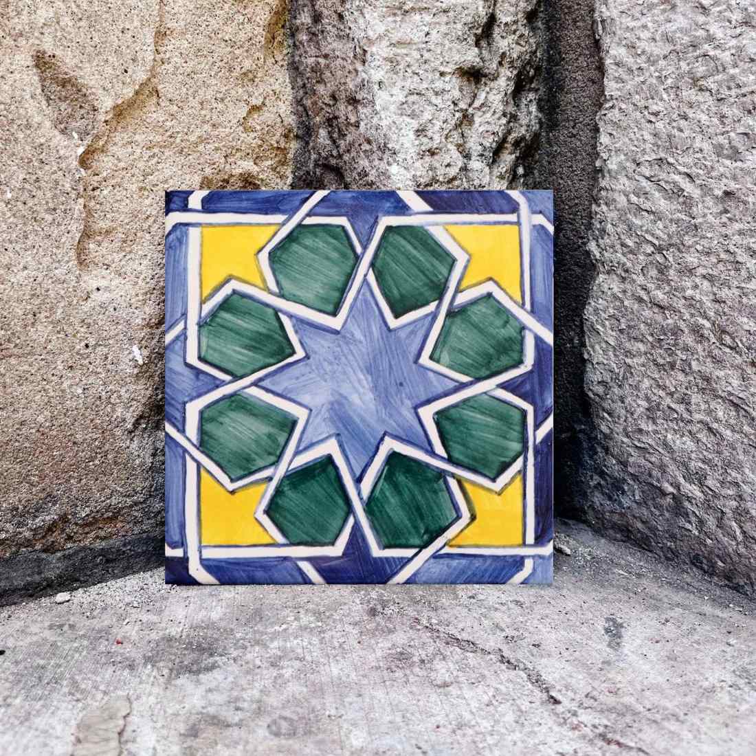 Mimo tego, że dzieciństwo już dawno za mną, nie przestałam wypatrywać na niebie pierwszej świątecznej gwiazdki! I obok śnieżynek to właśnie gwiazdki stały się tematem moich świątecznych kafelków z linii CICHA NOC. Pierwszy śnieg i pierwsza gwiazdka – oczekiwanie na nie, wpatrywanie się w niebo i ta radość kiedy już je widać! To wszystko (plus echa spaceru po wnętrzach Alcazaru w Sewilli, gdzie podobne gwiazdki zdobią całe ściany!) zainspirowało mnie do namalowania tego kafelka.