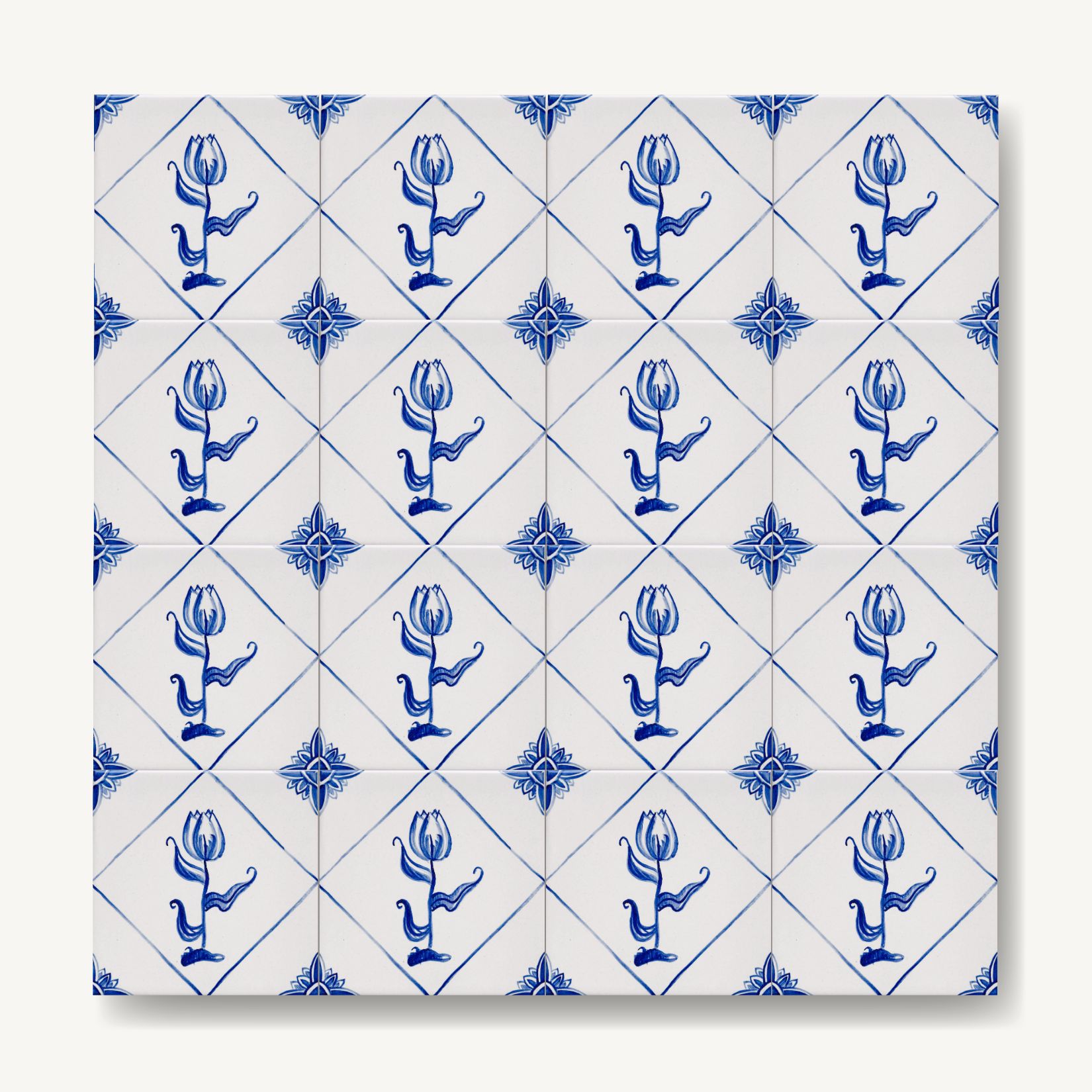 Każdy kafelek malowany jest ręcznie techniką majoliki. Dlatego drobne różnice w kresce czy odcieniu są naturalną częścią ich charakteru. Kiedy układają się obok siebie, tworzą żywy rytm – delikatnie zmienny, ale spójny.