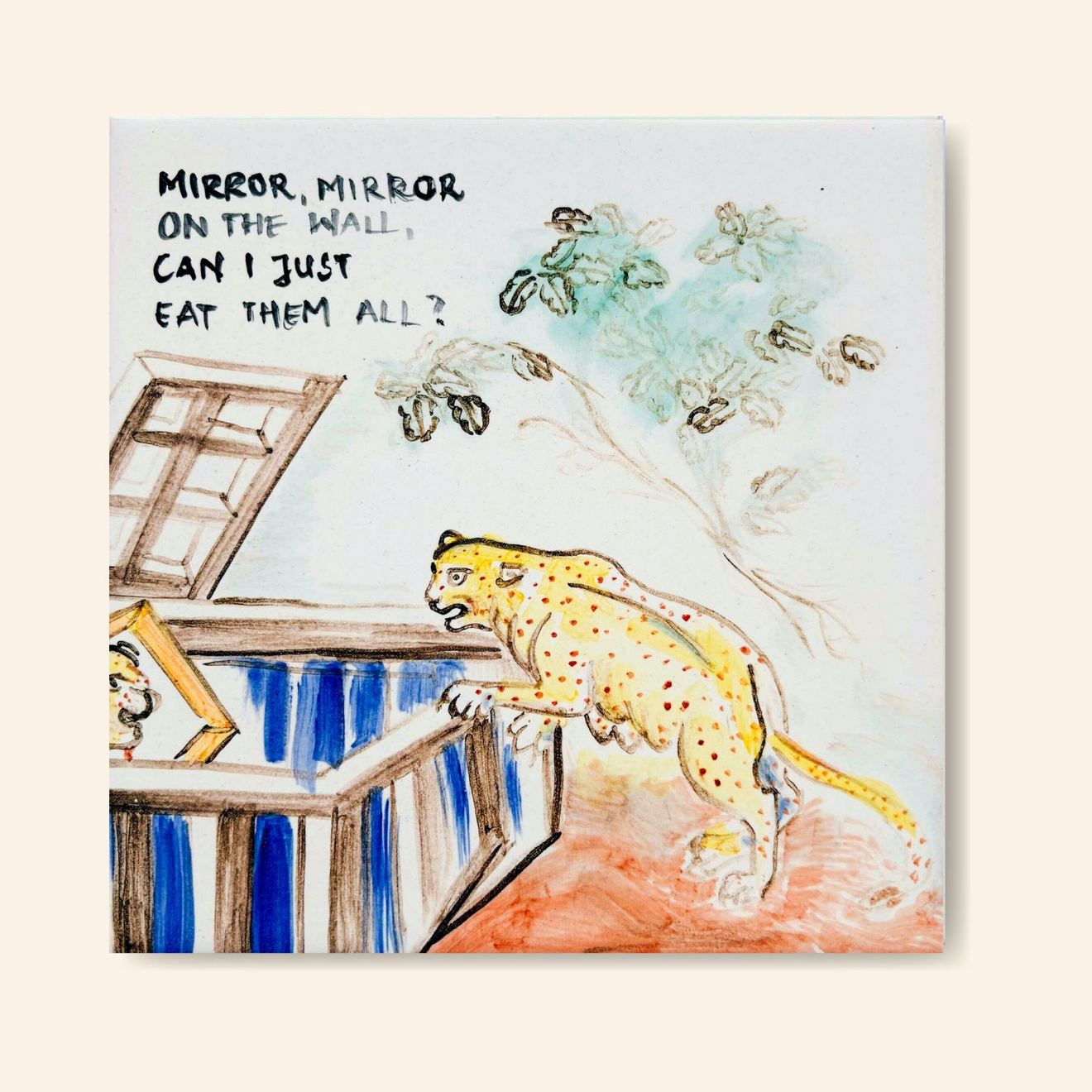 Każdy egzemplarz jest ręcznie malowany i wypalany w wysokiej temperaturze. To nie nadruk ani kalkomania. Minimalne różnice w linii, nasyceniu barwy czy prowadzeniu pędzla są naturalnym efektem pracy ręcznej i częścią charakteru tych prac.