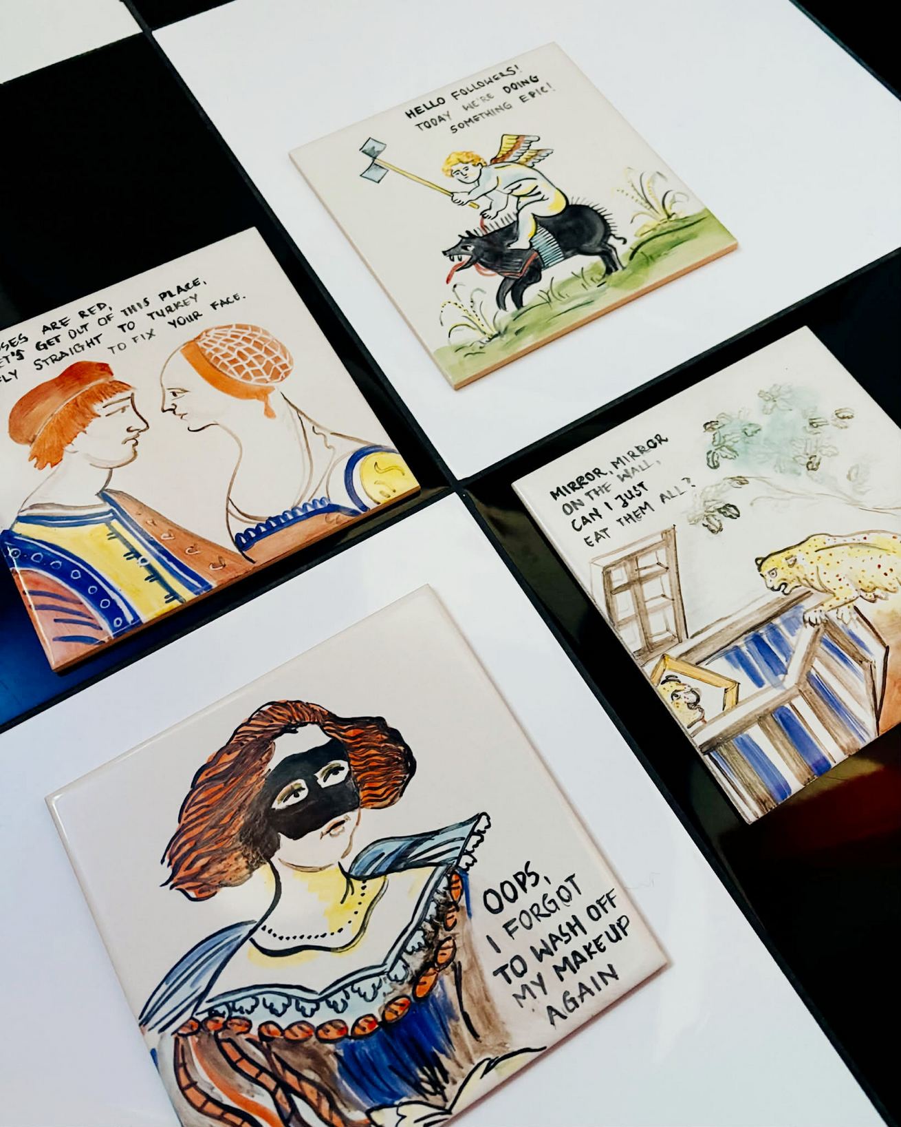 Seria Kontrapunkt powstała ze spotkania dwóch światów – ręcznie malowanej ceramiki inspirowanej tradycją azulejos oraz współczesnego języka wizualnego. To projekt współpracy z Very Ugly Plates, w którym klasyczna forma stała się nośnikiem aktualnego, wyrazistego komunikatu.